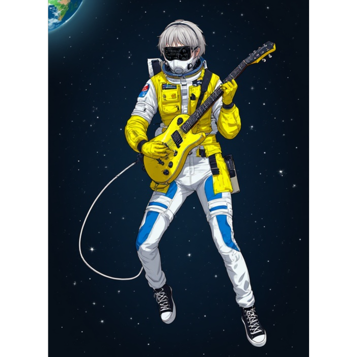 Bell plates, melodic Guitar Cord, Fast Powerful Pop-Heavy Metal, Melodic, Clear Female Gothic opera High Pitch Vocal, Immersive feeling, Pulsing drums, syncopated claps, and call-and-response vocals create a communal groove that evolves into soaring choruses, The track balances grounded earth rhythms with galactic expansiveness, Studio Rock EQ, channel 5, 1