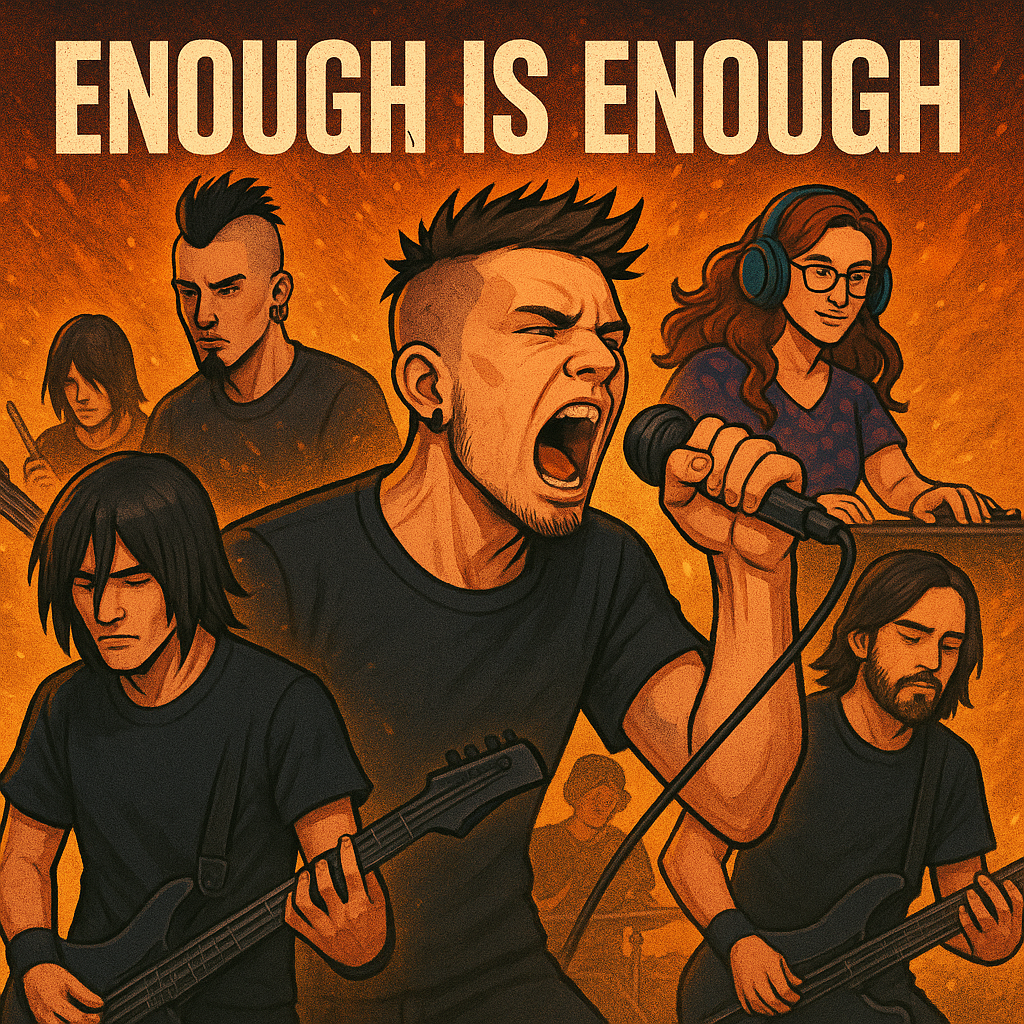 A ’90s rock-pop track opens with crisp electric guitars, lively bass, and punchy live drums, Verses feature tight syncopated strumming and playful drum fills, The pre-chorus adds brighter synth layers, leading to an energetic chorus with power chords and bold, harmonized backing vocals