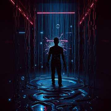 A dark ethereal industrial ritual twisted into a goo-soaked cyber lullaby, where massive chains drag through wet, rocky mud as gravity destabilizes and reality tears open, Water droplets strike and ripple through the mix while venomous synths pulse under unnatural pressure, folding in on themselves, The atmosphere is sealed and suffocating yet eerily pure, like a cold breath trapped in a collapsing chamber, Off-kilter rhythms stagger downward into vertigo and freefall as sharp industrial percussion locks into wobbly tribal horror-funk patterns, Mechanical drums swing with cheeky menace, distorted guitars purr like corrupted engines, and deep drones ooze through neon sludge, Bass gurgles with monstrous personality as glitchy sparkles drip like liquid steel and ominous candy-flame pads shimmer, Vocals mutate constantly — violent rhythmic breathing, gasps, choking whispers, teasing murmurs, robotic giggles, manic laughter, and demonic croons — breath becoming percussion