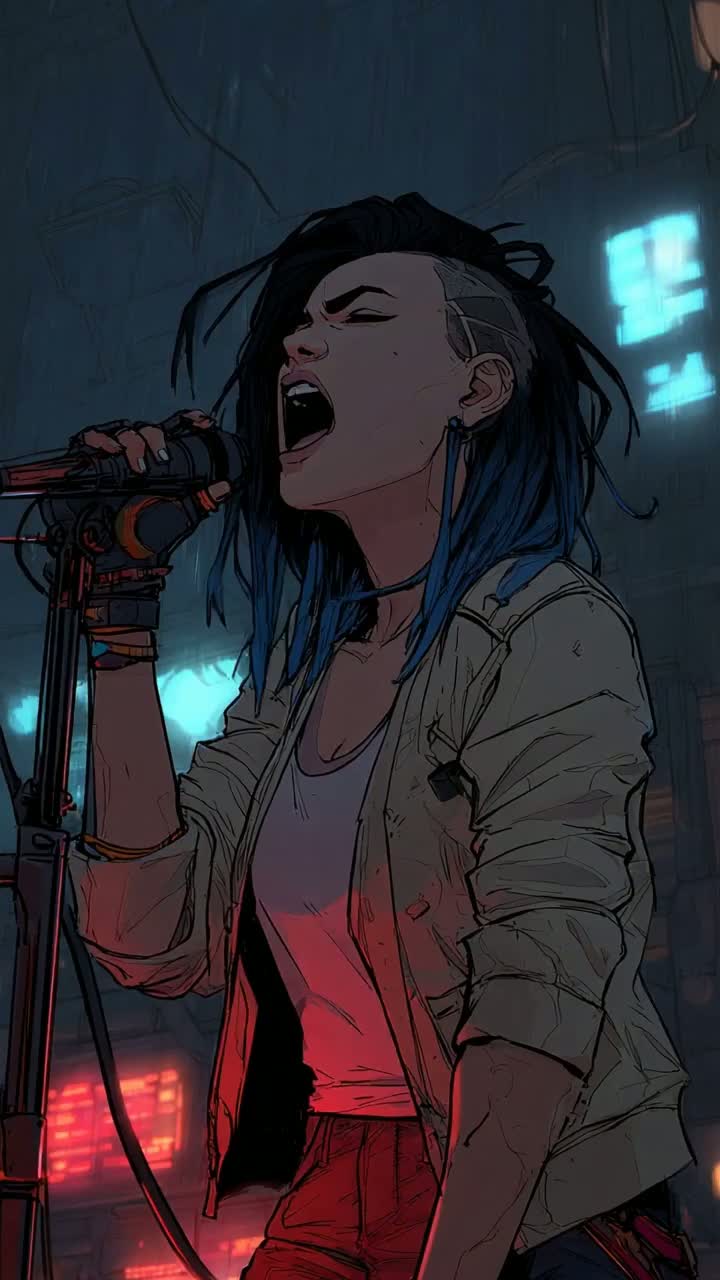 The track opens with distorted synth drones and pounding electronic percussion, building tension before unleashing crushing, syncopated guitar riffs and charged drums, Female vocals cut through with both aggression and melody, Industrial textures, cinematic risers, and cyberpunk effects amplify the dense, high-energy atmosphere