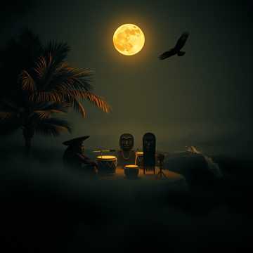 Caribbean Tribal Drums, Africana female vocal chants, Dark Trap R&B Soul, 100bpm, Deep Distorted pads