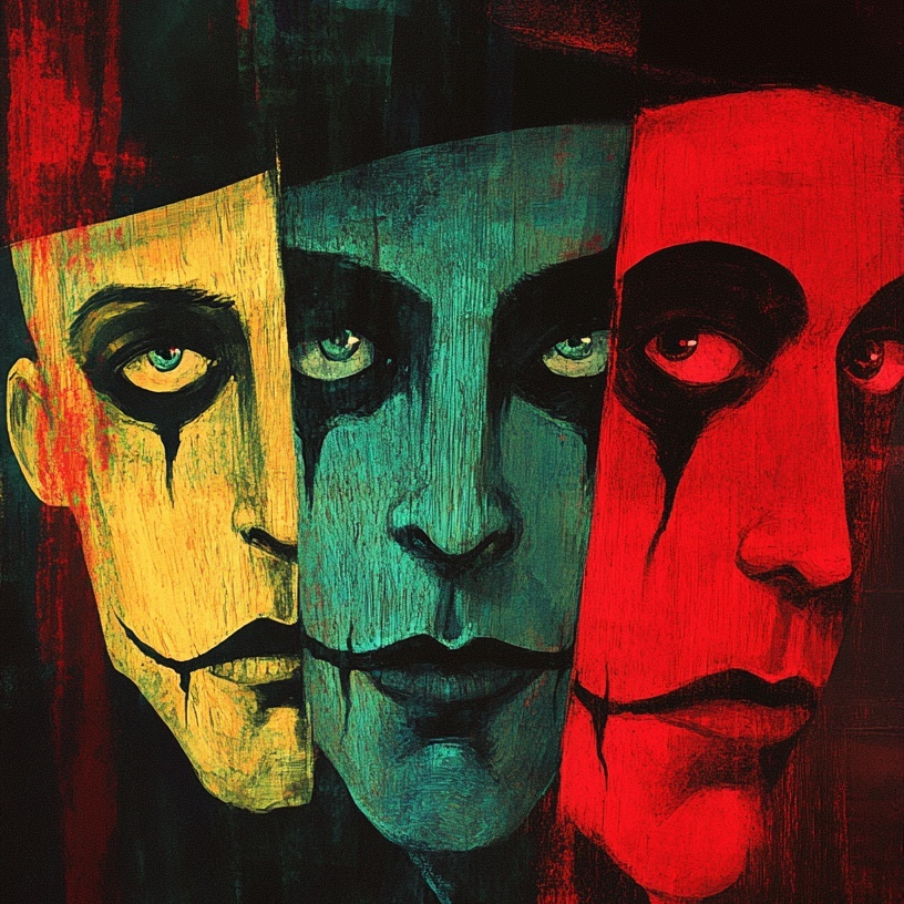 A warped, psychedelic sonic carnival — swirling detuned synths and glitchy calliope fragments dissolving into reverb-soaked echoes, heavy sub-bass and slow, hypnotic trap 808s pulsing underneath, shimmering reverse guitar loops bending like liquid, warped vocal samples fluttering like ghosts in a funhouse mirror, The lead voice is an unhinged yet inviting storyteller — smooth and warm one moment, snapping into manic laughter or cryptic whispers the next — pulling the listener deeper into a kaleidoscopic maze of sound, Beats stagger and melt, melodies twist into fractals, and the entire mix feels like stepping into a dream where the circus is underwater, lit only by neon reflections
