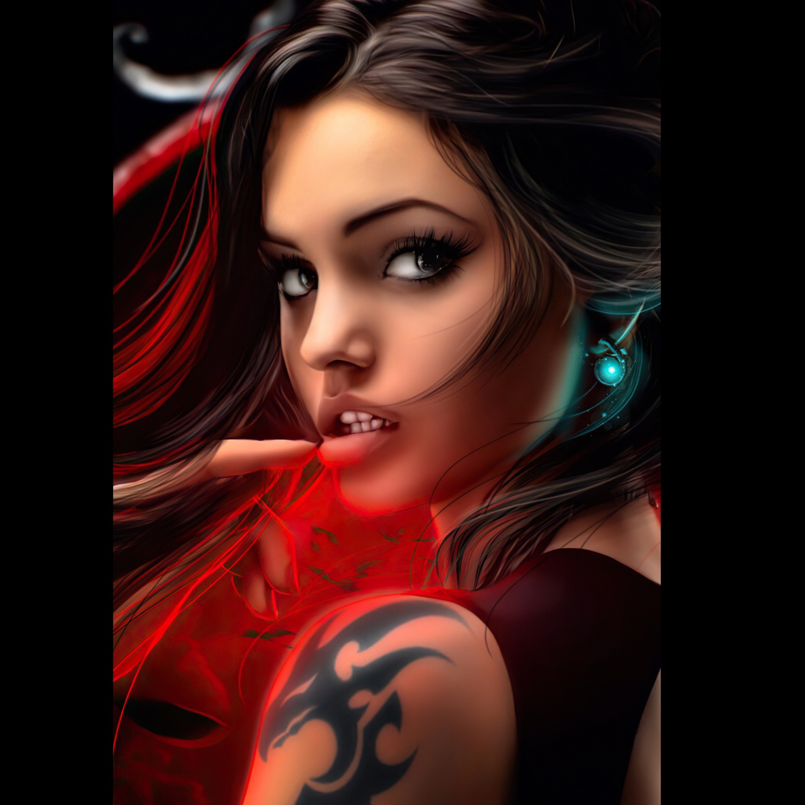 Female glitch-rock fused with alt-R&B croon and a DnB backbone, Sleazy fuzz bass, glassy darkwave pads, rhythmic vocal-chop gates, metallic ride patterns, halftime→doubletime flips, Pre-chorus tightens with dissonant post-hardcore voicings; Chorus detonates with soaring emo-pop topline over grinding guitars, Short Amen solo after Chorus 2, then a cinematic string-stab bridge with glitch-freeze and drop-in scream pickup, Vocal style: seductive, breathy female lead with erotic “mmh” ad-libs and soft gasps (non-lexical), close-mic intimacy, light lip/tongue clicks on downbeats, sultry vibrato in choruses, micro-growls on line-ends