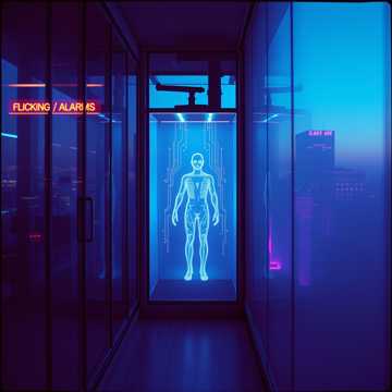 Create a dark, atmospheric electronic track with a cold, futuristic vibe, Start with a synth build-up and layered alarms (phone notifications, kitchen beeps, fire alarm, car alarm), After a dramatic drum crash, shift into a melancholic psychedelic verse with airy vocals and deep reverb, The style should blend darkwave, cyberpop and cinematic electronic music, Use pulsing bass, glitchy textures, echoing arps, and a steady mid-tempo beat, The chorus should feel heavier and emotional, with a frozen, mechanical tone, Include subtle robotic harmonies and distant metallic ambience, Maintain a sense of tension, paranoia and digital overload throughout the track, End by fading the music out while alarms slowly return in the background