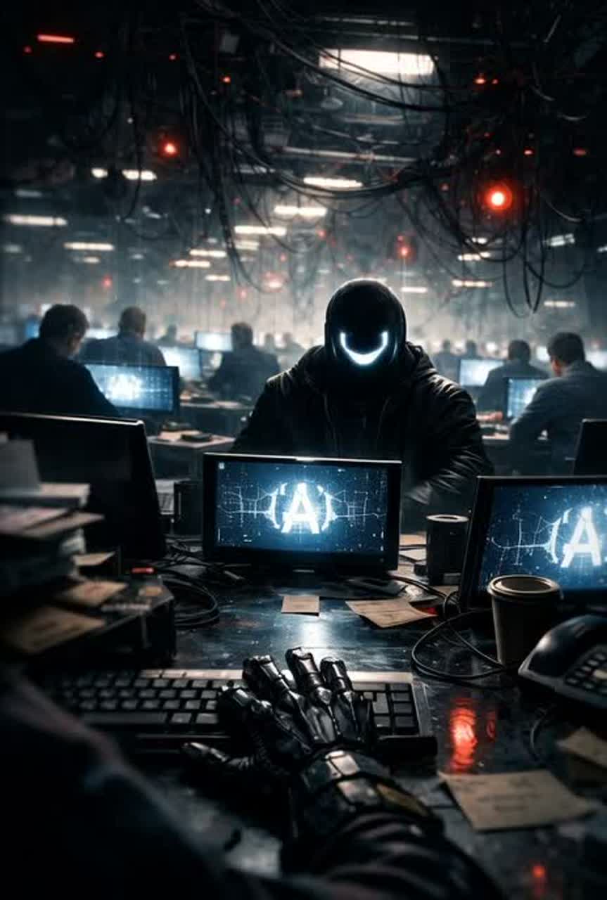 Bizarre cinematic electropocalypse, Spoken narration intro, then genre pinball: industrial hip hop, glitch pop, doom gospel choir, hyperpop splashes, orchestral stabs, drill hats, distorted bass, Tempo shifts, sudden dropouts, radio interference, modem squeals, office ambience, printer percussion, distant sirens, Male narrator, switching from calm documentary voice to frantic rap, Ghostly choir answers, sometimes reversed, Hooks are catchy but unsettling, like a warning jingle, Use call and response, Add fake corporate training video vibes, then melt into nightclub chaos, Strong dynamics, abrupt scene cuts, cinematic reverb, stutter edits, chopped vocal glitches, End with quiet ASMR style warning, tape stop, heartbeat sub
