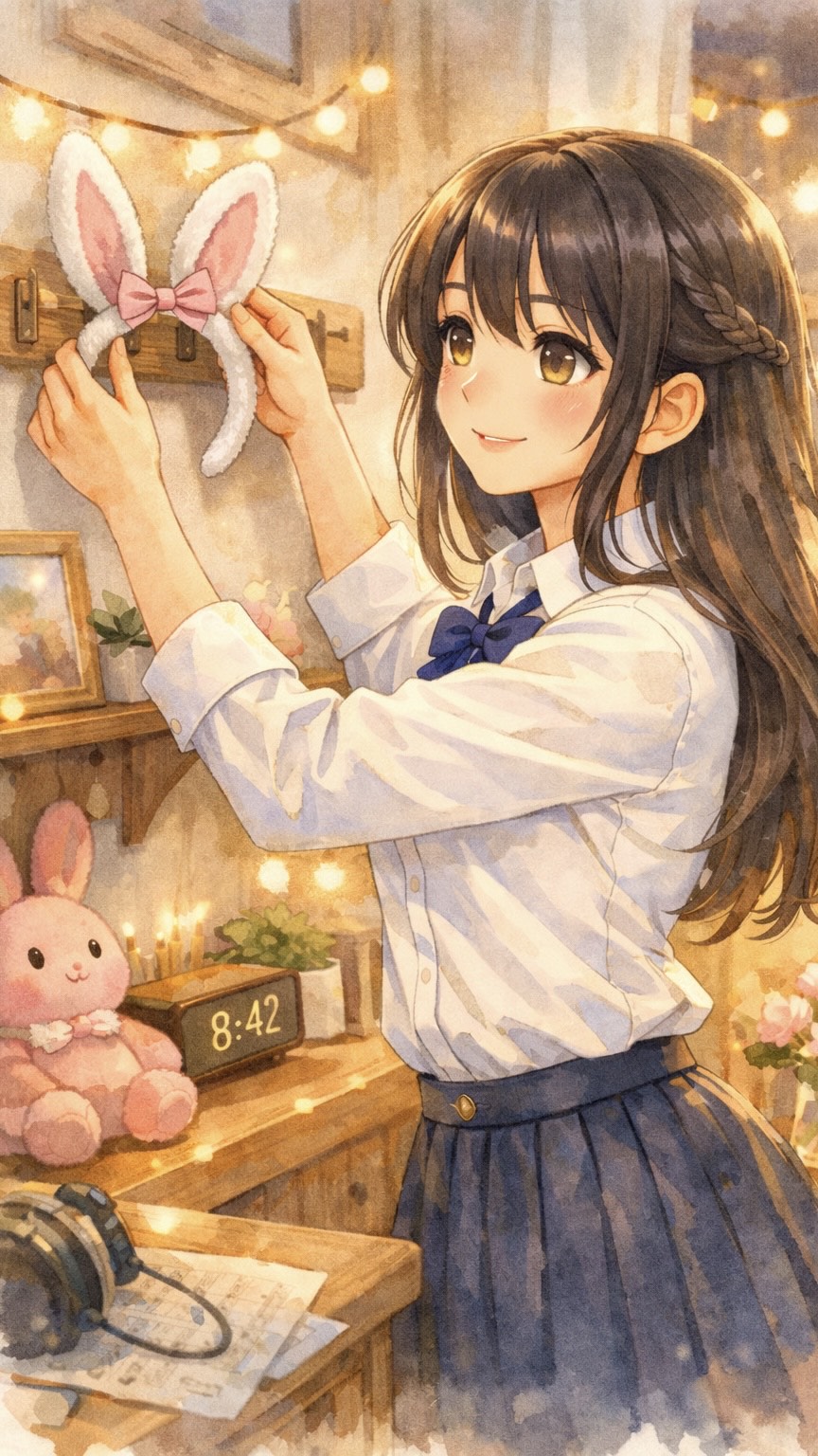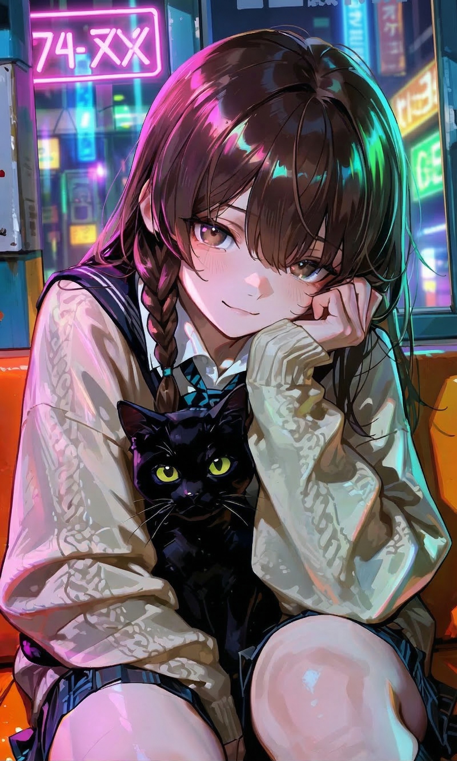 Mood: playful, midnight-blue, bittersweet, electric, impulsive — cute surface with hidden loneliness