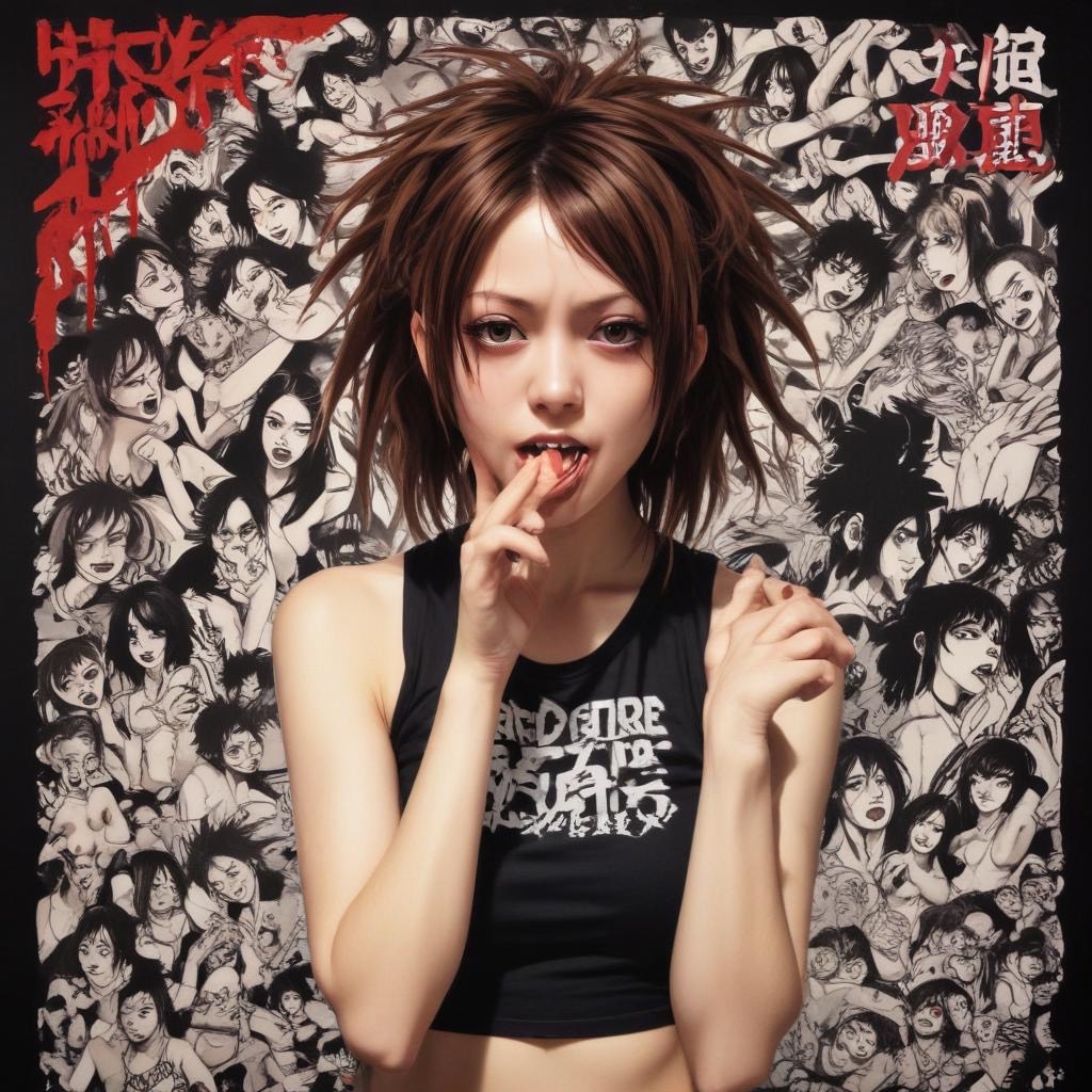 Japanese metalcore band with punk and funk influences, Aggressive male and female vocals, featuring both shouting and rap styles, Rapid tempo changes, energetic and chaotic sound with a balance of yin and yang elements, Includes call-and-response sections that create a sense of unity with the audience, Lyrics are humorous and rebellious, embodying the spirit of hardcore punk, Overall, the music is intense and has a strong live performance vibe, ---