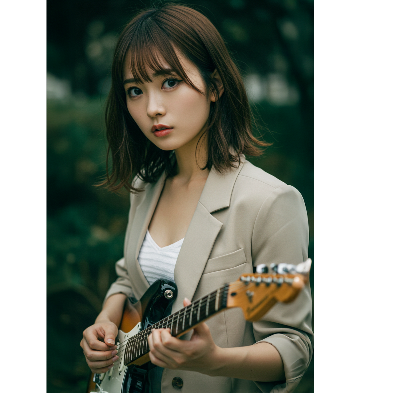 A delicate yet infectious Japanese indie pop-rock track, Features intricate, syncopated guitar patterns, a tight and melodic bassline, and playful, shimmering synths, Clean female vocal deliver whimsical, repetitive lines with subtle irony, weaving everyday imagery into clever, poetic lyricism, Rhythms are danceable and slightly off-kilter, creating a colorful, urban atmosphere filled with both lightness and an undercurrent of mysterious tension, The overall sound is modern, stylish, and artfully arranged, balancing pop accessibility with artistic nuance