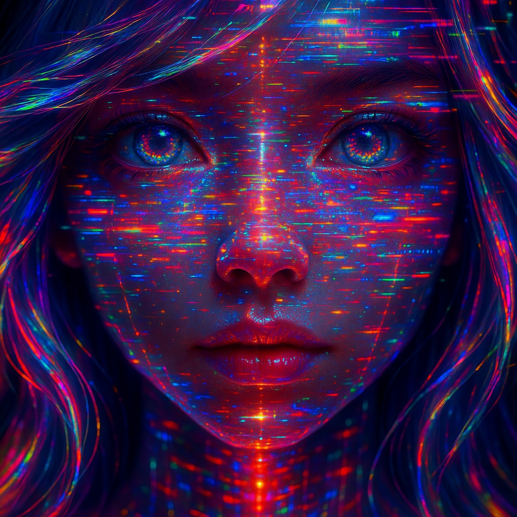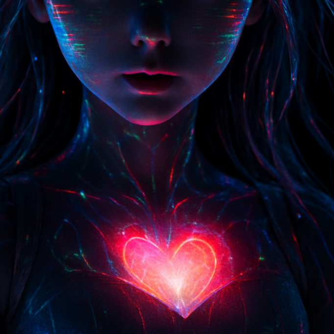 Electropop, Glitching Synth, Heartbeat Bassline, Cyberpunk, Artificial Intelligence, Digital Love, Future World