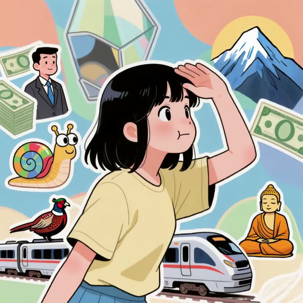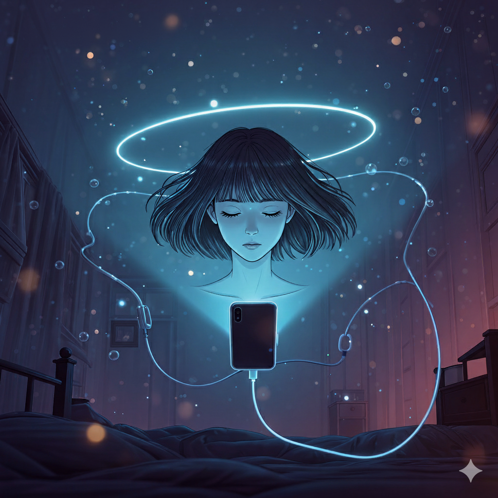 Hyper-emotional Liquid Funk track blending shimmering synth layers, fast DnB grooves, rolling sub-bass, dreamy pads, and digital chimes, Song flows between crisp rhythmic cuts and floating ambient sections, Vocals are Japanese female, cute but sarcastic, playful and spiritual with a hint of melancholy, Verses evoke glitchy fragility and recorded memory, Pre-Choruses build tension with repetitive call-response, Choruses explode into cosmic visuals (“クロスフェード, ” “にまんろくせんねん”), and the Bridge becomes surreal, echoing through time, Final Chorus is radiant with harmonized vocals and digital bursts, Outro fades with poetic fragments and decaying rhythms, liquid funk; drum & bass; EDM; j-pop fusion; female vocal; spiritual irony; glitch pop; cosmic melancholy; 172BPM; F-sharp minor