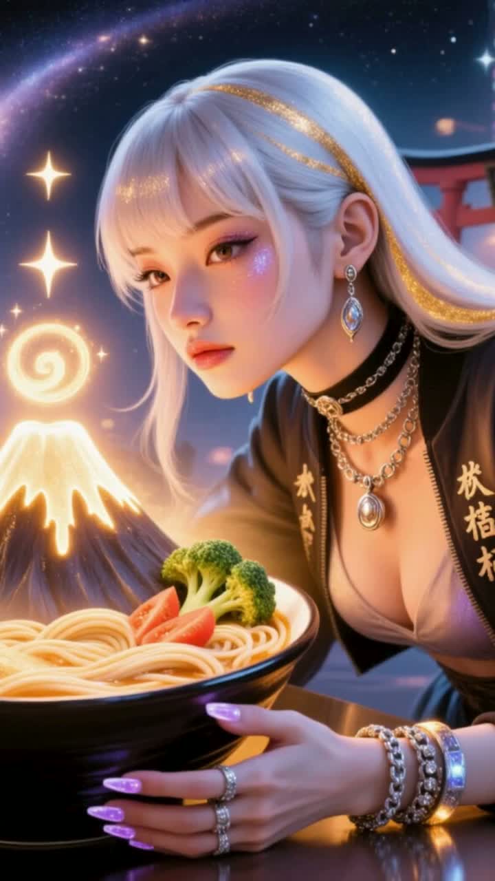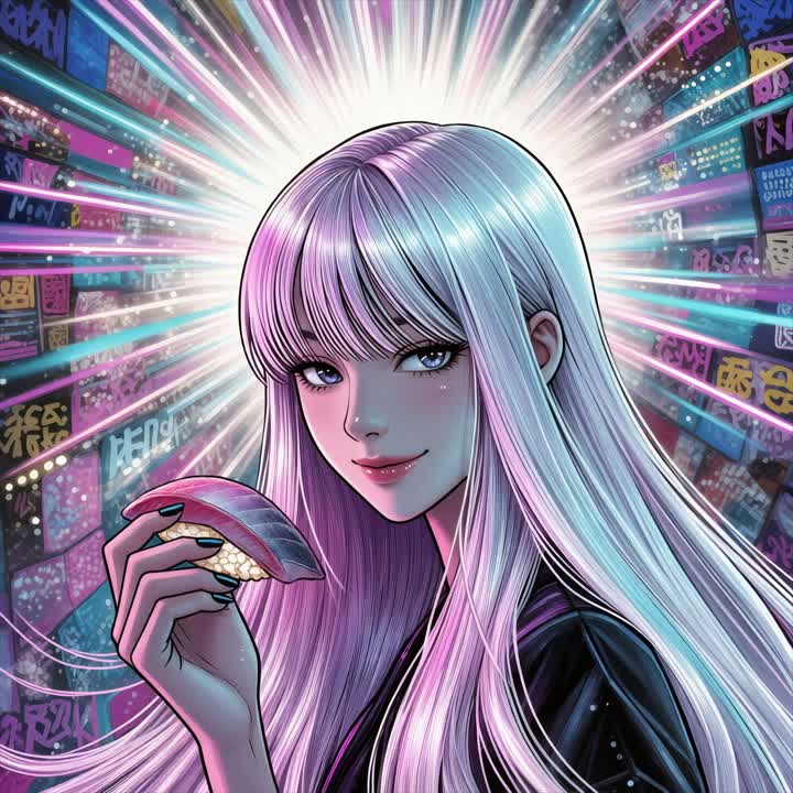 Upbeat and quirky EDM track blending 2020s synth-pop textures with festival-style drops, playful Japanese-English call-and-response, and comical storytelling about “atarime” (dried squid) being insistently offered by grandpa and grandma, Each section scales up the intensity of their offers—from casual persuasion to over-the-top cosmic celebration—mirroring the music’s build from light arpeggios to explosive double-tempo drops, Infused with liquid funk elements: rolling, syncopated breakbeats, deep sub-bass grooves, airy pad textures, and smooth melodic basslines weaving through the arrangement to add fluidity and warmth beneath the playful chaos, Cynical-cute Japanese female lead vocals, with ad-lib and sarcastic-pop lines, plus a scat section for rhythmic play, EDM; synth-pop; liquid funk; festival; 2020s; playful; Japanese-English vocals; double-tempo drops; layered vocals; humorous; reverb-heavy synth; cynical-cute female vocal; ad-lib layers; sarcastic-pop lines; escalating narrati
