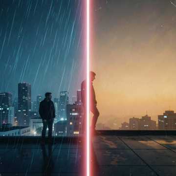 94–100 BPM, A minor, French hip-hop and alternative R&B, light warm relaxed urban and modern, beat-driven, minimal Rhodes motif, crisp trap drums, sharp dry snare, soft syncopated hi-hat rolls, warm melodic 808 bass, sparse Rhodes chords, soft warm pads, subtle airy background textures, very restrained harmonies, male intro voice natural, close, calm and intimate, warm intimate male close-mic vocal for the calm English parts, female voice leads the fast French parts with agile melodic rap flow, smooth sung male hook, minimal pitch correction, light short reverb, tight dry mix, minimal room ambience, upfront vocals, spacious but warm arrangement, clean modern mix, philosophical reflective mood, restrained tension, detached but intimate, late-night city feeling, depth over speed, clear contrast between her motion and his stillness, ‑electronic vocal distortion in intro, ‑vocoder, ‑telephone filter, ‑formant effects, ‑robotic vocals, ‑overprocessed vocals, ‑dark trap, ‑cold synth wash, ‑heavy sub bass, ‑drill, ‑phonk, ‑reggaeton, ‑aggressive rap, ‑wet reverb, ‑cavernous ambience, ‑rock, ‑pop-rock, ‑indie rock, ‑singer-songwriter, ‑acoustic ballad, ‑dramatic strings, ‑schlager, ‑chanson, ‑theatrical vibrato, ‑bright pop sheen, ‑EDM drops, ‑glossy synths, ‑heavy autotune, ‑ambient wash, ‑sugary hook, ‑romantic softness, ‑cute ad-libs, ‑gospel feel, ‑choir worship vibe