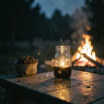 Laid-back nostalgic pop with subtle folk and R&B influence, 78–88 BPM, warm acoustic guitar, soft electric textures, mellow bass, light drums with rim clicks and soft percussion, Male vocal, intimate and relaxed with occasional layered harmonies, Tone is calm, reflective, and slightly smoky with a late-night campfire feel, Verses are conversational and memory-driven, chorus is smooth and warm with emotional weight, Production is minimal, warm, and spacious with gentle ambience (crackling fire, night air), Focus on storytelling, comfort, and quiet connection