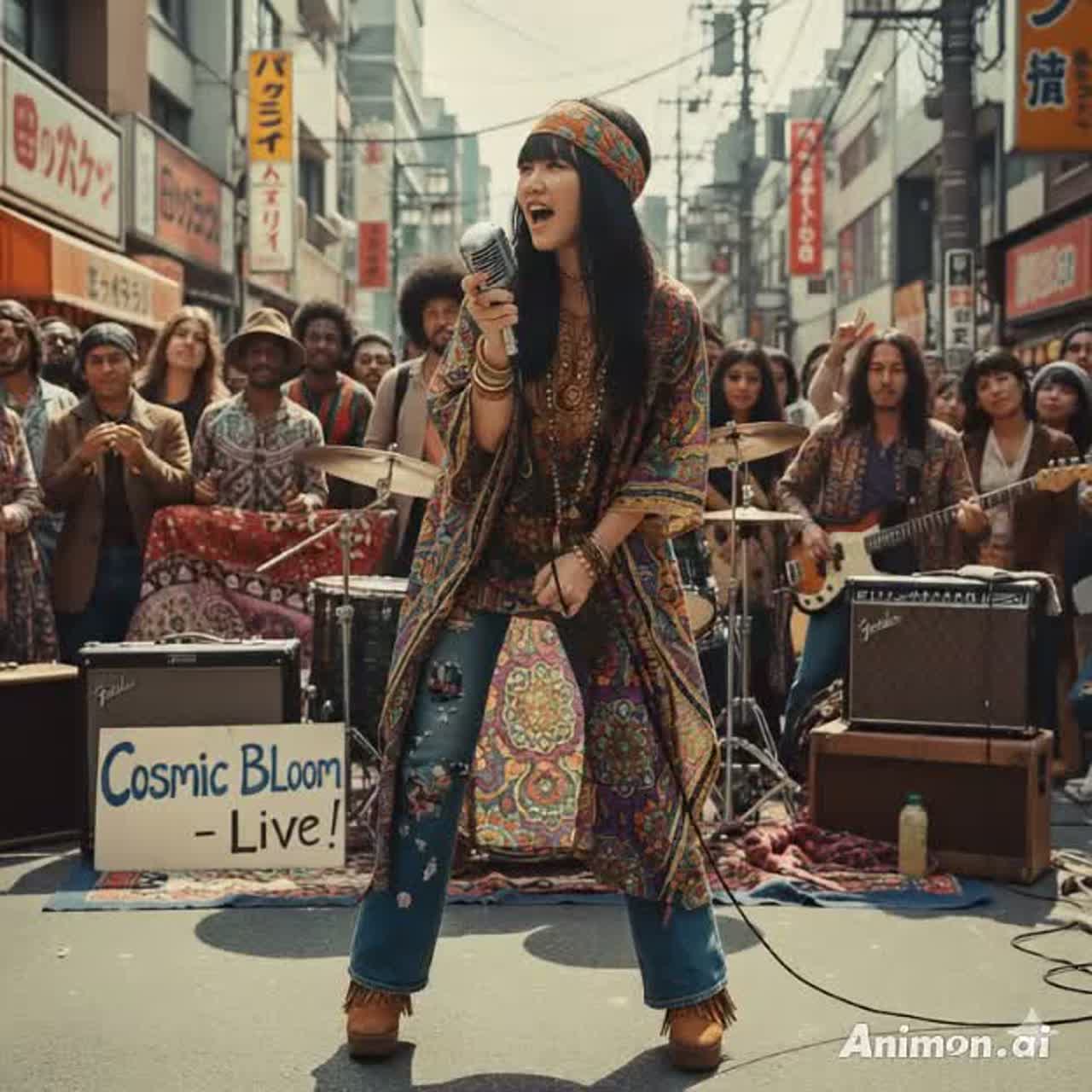Genre: J-rock taste, Heavy Blues Rock, Grungy Hard Rock, catchy hook chorus, emotinal, antem, 1960s British Invasion style, female vocals, raw, desperate, and strained, Guitar has a thick, saturated Fuzz and Heavy Distortion tone, Drums feature a vintage, punchy sound with heavy snare accents, maintaining a Medium-tempo, Driving rhythm (approx, 105 BPM), Key element: Prominent, Overdriven Bassline, The bass is mixed high, acting as the foundation, driving the Heavy blues groove and providing a relentless, thick, and upfront sound that leads the rhythm section, Minor key throughout, Structure: [Intro - Feedback/Riff] [Verse 1] [Chorus] [Verse 2] [Chorus] [Bridge - Abrupt Key Change] [Guitar Solo - Fast-tempo, Chaotic, Fuzz] [Bridge - Return to Original Key] [Verse 3] [Outro - Extended Feedback, Fade Out]