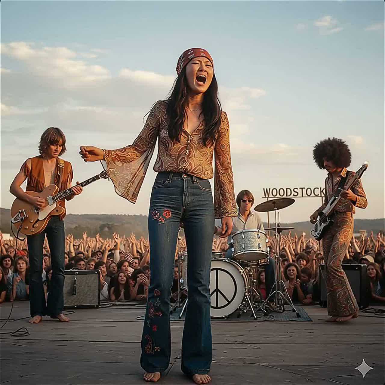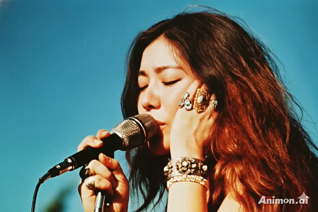 70s-inspired rock, powerful female vocals, driving electric guitar riffs, bluesy undertones, energetic live band feel, analog warmth, dynamic drums, soulful expression, classic rock vibe, emotional in