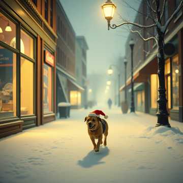 classic nostalgic christmas song, warm male vocal, gentle swing rhythm, glockenspiel and strings, walking through decorated town, snow falling softly, cozy family mood