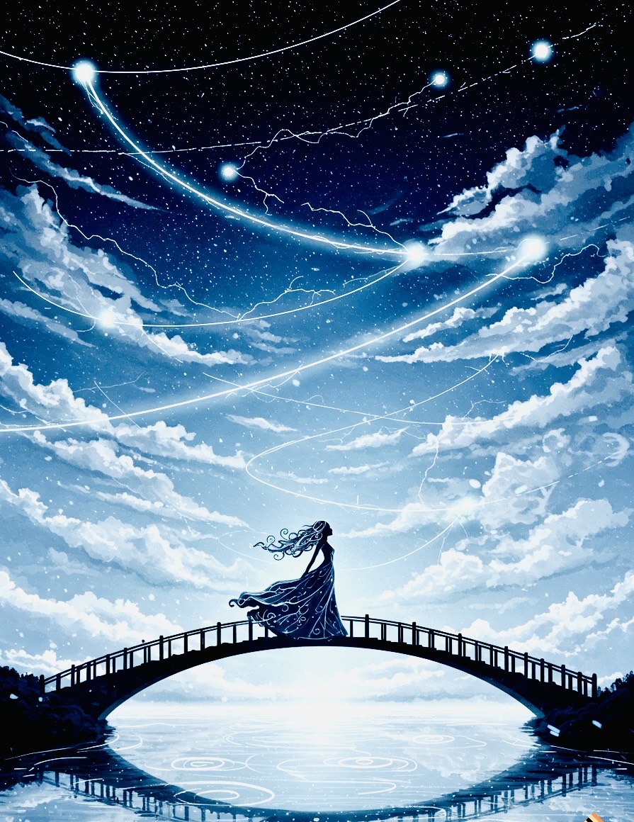 Silence And Loud, Soft And Explosive Progress, Drums: Wadaiko Influenced, high tempo, Express gravity, Koto: Main-Lead Part, Melodic and tremolo, Uplifting Phrasing, Sounds Expressing waves of sea, Vocal: Female, French Accent, J-Alternative Emo Influenced, Wide Range and Style, Spoken, Whisper, Belting, Raspy, Shout, express meteor shower, Shakuhachi: sings with vocal, Piano: the highest octave 16beat phrasing, up beating and floating, creates hi range rhythms, express sparking meteor shower sound, Shamisen; hooking fil in sharp attacks, Shamisen covers mid-range and piano covers high range for dancing groove, Eq: Shamisen and Vocal Clarity, Groove: Organic and hyper energetic