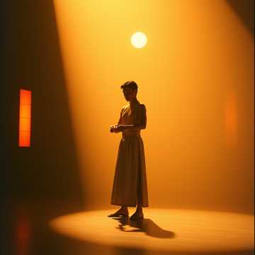 Fusion of Mevlevi music and experimental ambient, Minimal orchestra and male and female singers, Bpm68 and glitchy modulating accelerating up to Bpm90, vocal:female, yodel techniques, clear, ethereal and temptations, rich overtone, breathy, Male vocal: Khomein-Mongolian style rich and gentle, soulful voice, Contrabass: create the bottom of groove, glockenspiel: play like bass guitar for rhythm and groove, triangle: ring like metronome