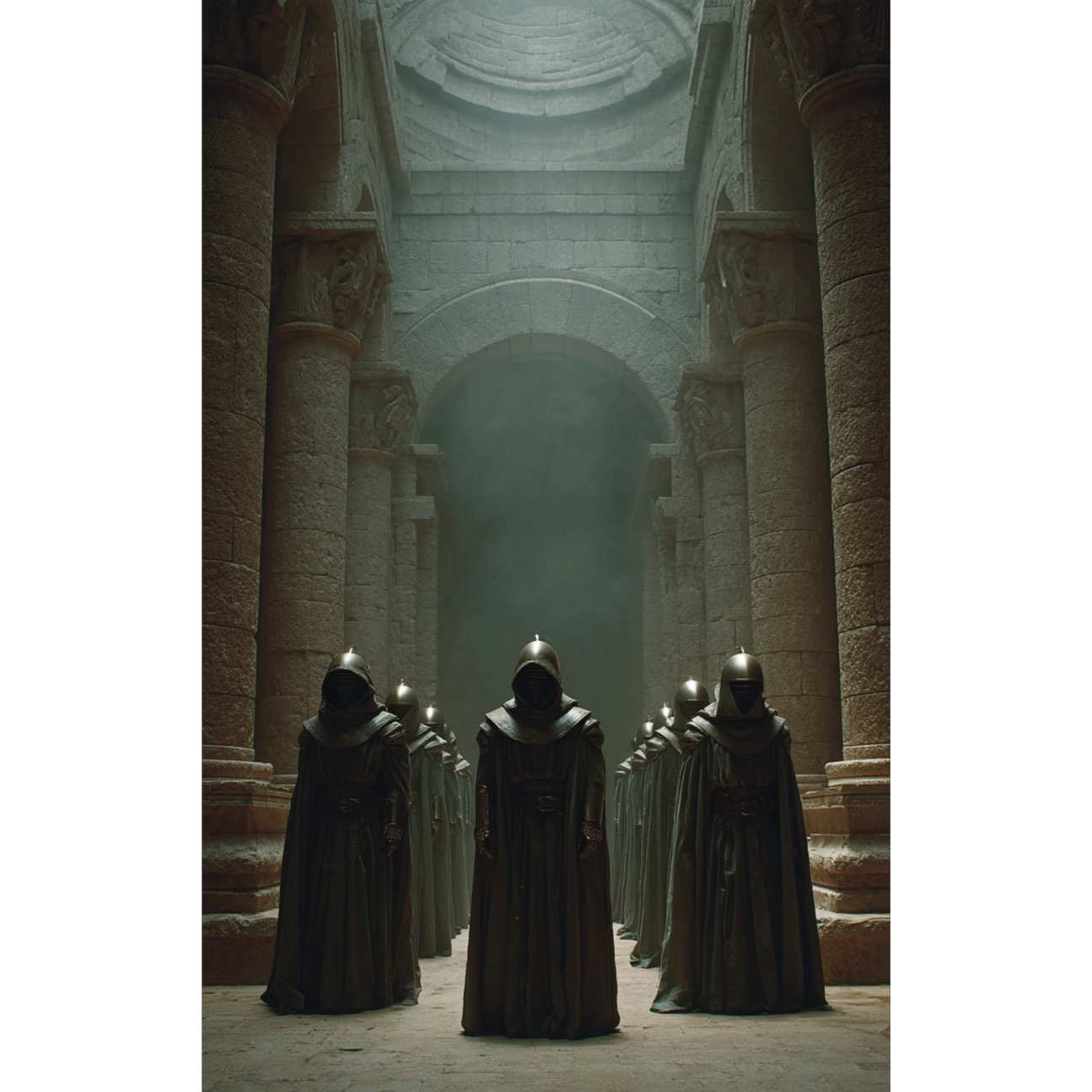 Militaristic rock with pounding snare drums, distorted electric guitars and a haunting Gregorian-style choir