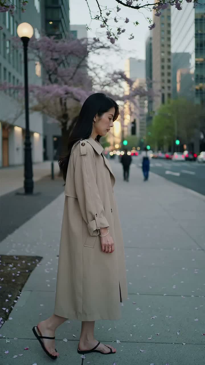 emotional melodic edm, chill trance, japanese ambient pop, female soft vocal, warm and gentle voice, dusk atmosphere, cherry blossom petals falling, piano intro, emotional synths, hopeful but slightly sad feeling, sunset sky, beautiful and nostalgic mood, BPM124