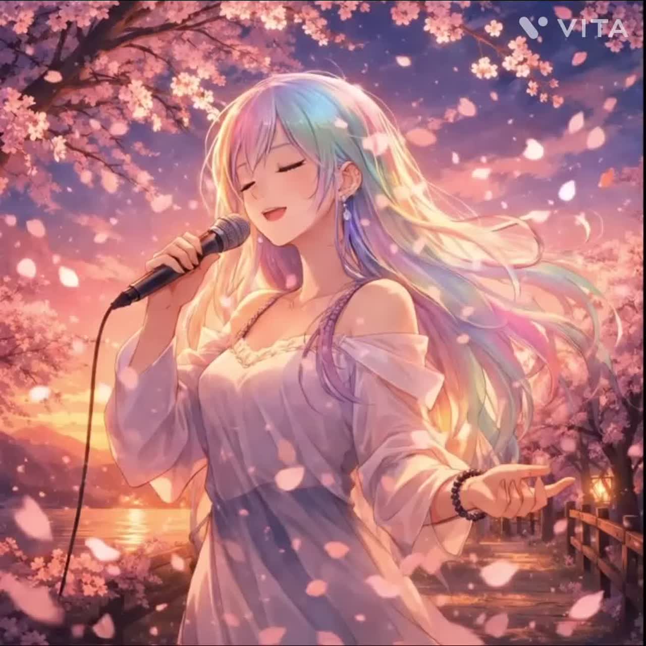 A masterpiece visualizing a Japanese utopia (Togenkyo) through sound, Tempo: 80-90 BPM, dreamy and floating feel, Instrumentation: Lush analog synth pads representing mist, granular synthesis textures mimicking falling petals, deep warm sub-bass grounding the track like the earth, crisp minimal glitch percussion, ethereal strings, piano with felt dampener for intimate sound, No traditional Japanese instruments used directly but evoked through synthesizer timbre and scale, Vocals: Crystal clear female vocals, breathy, delicate yet core-strength, non-vibrato, straight tone, singing in high fidelity Japanese, Mood: Transcendent, ephemeral, heartbreakingly beautiful, spiritual, cinematic, Production: High dynamic range, spacious reverb, wide stereo image, immaculate sound design, Language: Japanese