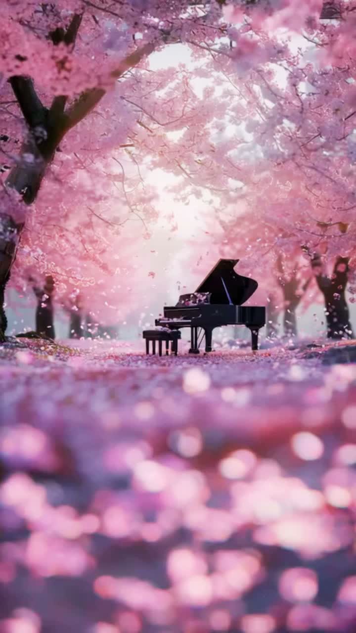 Modern classical piano art song with a stylish cinematic atmosphere, Moderately upbeat tempo (around 95–105 BPM) with flowing piano arpeggios and a minimalist rhythmic piano pattern, creating a gentle forward motion, Subtle harp accents, light ambient textures, and elegant chamber-pop orchestration that keeps the sound modern and refined, Transparent female vocal, pure and airy tone, expressive but restrained delivery, Poetic and slightly mysterious mood inspired by spring, sakura blossoms, and fleeting memories of parting beneath the trees, Gradually build emotional intensity throughout the song and modulate to a higher key in the final chorus for a bright, uplifting climax