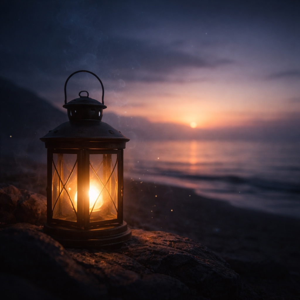 70s prog/space-rock suite; slow 66–68 BPM, heavy half-time; Key: A minor, Wide stereo, tape warmth, plate reverb, big negative space, No pop hooks/modern chorus lift, Suite dynamics: pads → guitar textures → delayed full kit → peak → drop/strip → warm coda; clear sectional contrast, Mood: afterglow/residual light/calm guidance, Vocals: intimate conversational baritone; sparse raspy alto echoes; stacked harmonies mainly on chorus hook lines, Instruments: clean-overdrive lead gtr w/ delay+phaser (lyrical bends, long notes, space); tremolo rhythm gtr + plate verb; organ + analog pads; FM EP subtle color; melodic bass; roomy live drums, Lead guitar: motif-based, chord-tone/modal (Aeolian/Dorian); avoid blues-rock pentatonic run clichés, Drums: swells early; full kit delayed ~1:45–2:15; peak late then strip back, Texture: radio hiss slowly becomes pitched/harmonic, Harmony: slow changes, pedal tones; late Dorian lift Am(add9)→Cmaj7→Dsus2→Am6/9; end Am(add9)/Am6/9