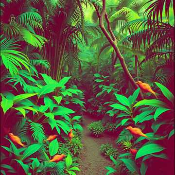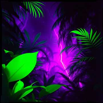 Create a heavy, dark, wonky mid-tempo psychedelic jazz-bass track (85 BPM), Build around thick rubbery wobble bass, tight warped LFO bends, sharp neuro stutters, and a stomping, off-kilter swing, Add focused jungle ambience—predatory birds, insects, rustling leaves, distant animal calls—used as rhythmic textures and transition accents, Sound design should be clean, hard, and deliberate: crisp squelches, tight swampy whomps, resonant drips, glitch hits, bubbling low-end movements, and controlled psychedelic swells, Drops should slam with massive bending basslines, seismic sub punches, and locked-in syncopation, Atmosphere: a dense, humid jungle ritual with heavy festival energy and razor-clean drums