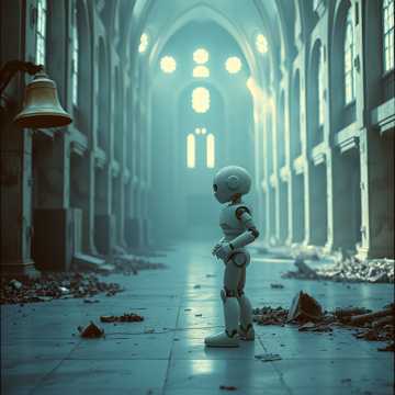 Cinematic dark ambient shoegaze in F# Dorian, 48 BPM, 6/8, Cathedral-scale reverb with distant synthetic choir pads and low organ drones, Gentle but degraded glitch textures like corrupted memory fragments and failing data streams, Sparse metallic bell tones with long decay, Clean, reverb-drenched electric guitar swells layered beneath soft distortion, Sub-bass pedal tone holding the tonic with occasional minor sixth lift, A simple hymn-like melody repeated with slight variations as if maintaining ritual protocol, Atmosphere: a lonely caretaker robot singing to dead AI systems in a ruined digital cathedral, ‑aggressive industrial percussion, ‑fast rhythms, ‑trap hi-hats, ‑heroic orchestration, ‑bright pop melodies, ‑EDM drops, ‑heavy metal riffing, ‑cinematic trailer impacts, ‑funk grooves