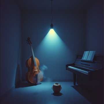 jazz, Minimal bossa-jazz quartet at 90 BPM in 4/4; intimate, dry room sound, Upright bass carries a hypnotic 2-bar Dm9–B♭maj9–Gm9–A7(b9) motif, ghosting small variations each pass, Nylon guitar comps soft syncopated shells and guide tones; piano drops one spacious chord per bar, adding darker color in B with tense upper extensions, Shaker stays close and sandy, while brushed kit murmurs a soft ride pattern and gentle feathered kick, Very low dynamics throughout, slow fade on the last cycle, minimal, harmony, steady