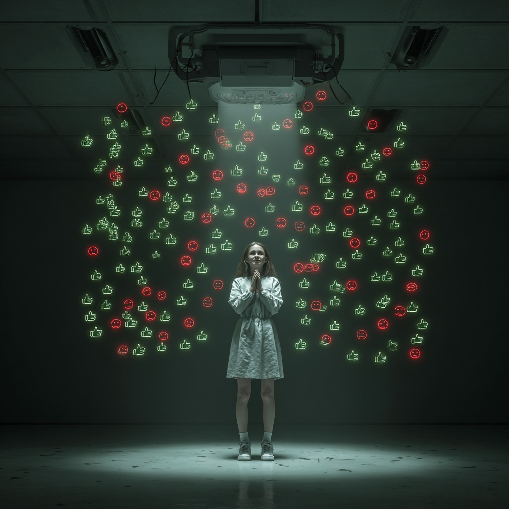 Bratty pop punk crossing into hardcore breakdown territory, female vocals alternating between saccharine fake-sweet head voice and full-throated chest scream, Crunchy distorted rhythm guitars, fast punk drums with double-kick on choruses, driving root-note bass, Verses use clean intimate tone with single-note guitar, choruses explode into wall-of-sound, 165 BPM, 4/4, key of C major modulating to A minor on chorus, Raw garage production, vocal grit prioritized over polish, no autotune, no electronics, early-2000s riot grrrl meets mall punk, snotty and venomous