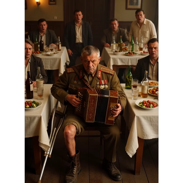 The track opens with accordions and nylon-string guitars weaving a Russian chanson vibe, then picks up with electric guitar and bass for a rock-driven edge, Verses feature understated piano, steady drums, and melodic lead guitar, Choruses expand with the full band, The bridge pivots to minor key strings, shifting tempos, and flows into a powerful, instrumental-heavy outro