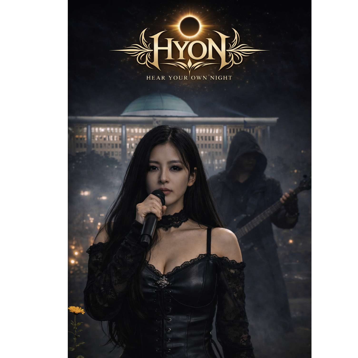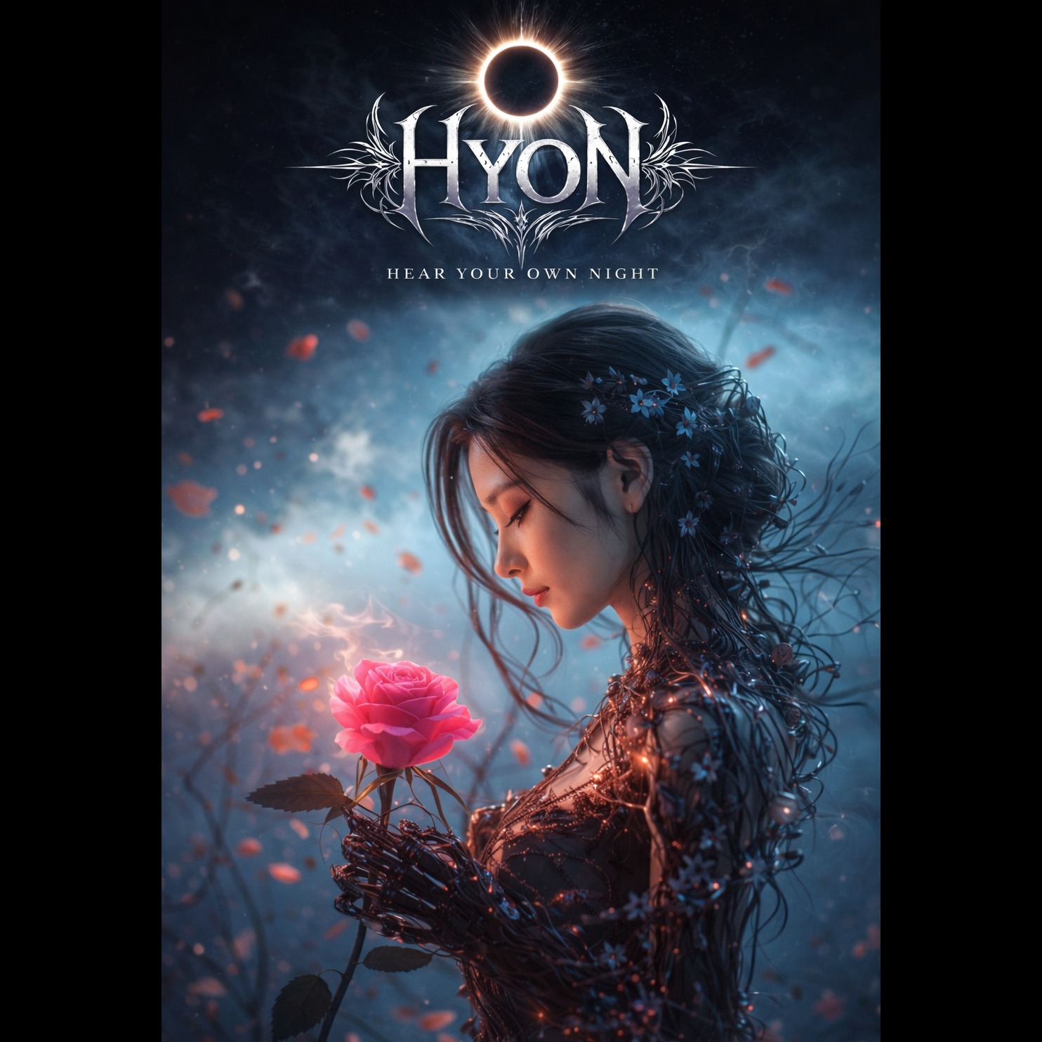 Korean poetic metal ballad, restrained yet heavy, modern K-metal identity, Tempo: 88 BPM, Key: D minor, Vocals: Korean female vocal (Yeoni), restrained but powerful delivery, clear diction, controlled breath, no sobbing, no pop vibrato, emotion expressed through endurance and dignity, slight grit only in the final chorus, Bass: Prominent and memorable metal bass (GRAV), deep, thick, and steady, long sustained notes, supports the song with weight rather than groove, bass-forward mix that leaves a lasting impression, Guitars: Low to mid-gain distorted guitars, wide and slow, supportive texture, never leading over bass or vocals, Drums: Heavy and minimal, steady tempo, tom-focused, no flashy fills, endurance-driven feel, Instruments: Subtle dark strings and ambient pads, Mood: Waiting, endurance, quiet strength, dignity, time passing through a long night until a flower blooms, Structure: Verse-driven, restrained chorus, instrumental space after chorus, calm and heavy outro