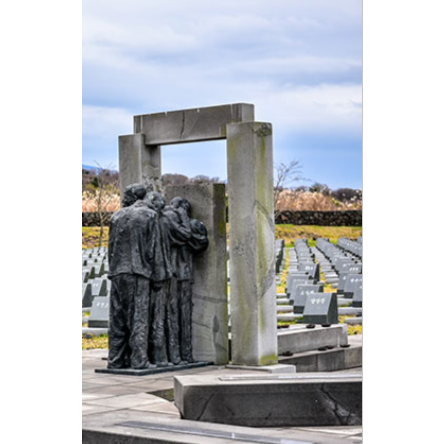 A solemn Korean rock ballad with symphonic elements, 90 BPM, 4/4, Female vocalist with powerful and emotional tone (like SoHyang), expressing both grief and hope, Instrumentation: Acoustic guitar, strings, traditional Korean flute (๋๊ธ), deep rock drums, and a soft backing choir, Mood: Memorial, mournful yet uplifting โ evoking the memory of Jeju 4ยท3, turning tragedy into peace and reconciliation, Chorus should soar with high emotional power, emphasizing the phrase โ๋๋๊ฐ์๊ด, ํํ๋ง ๋
