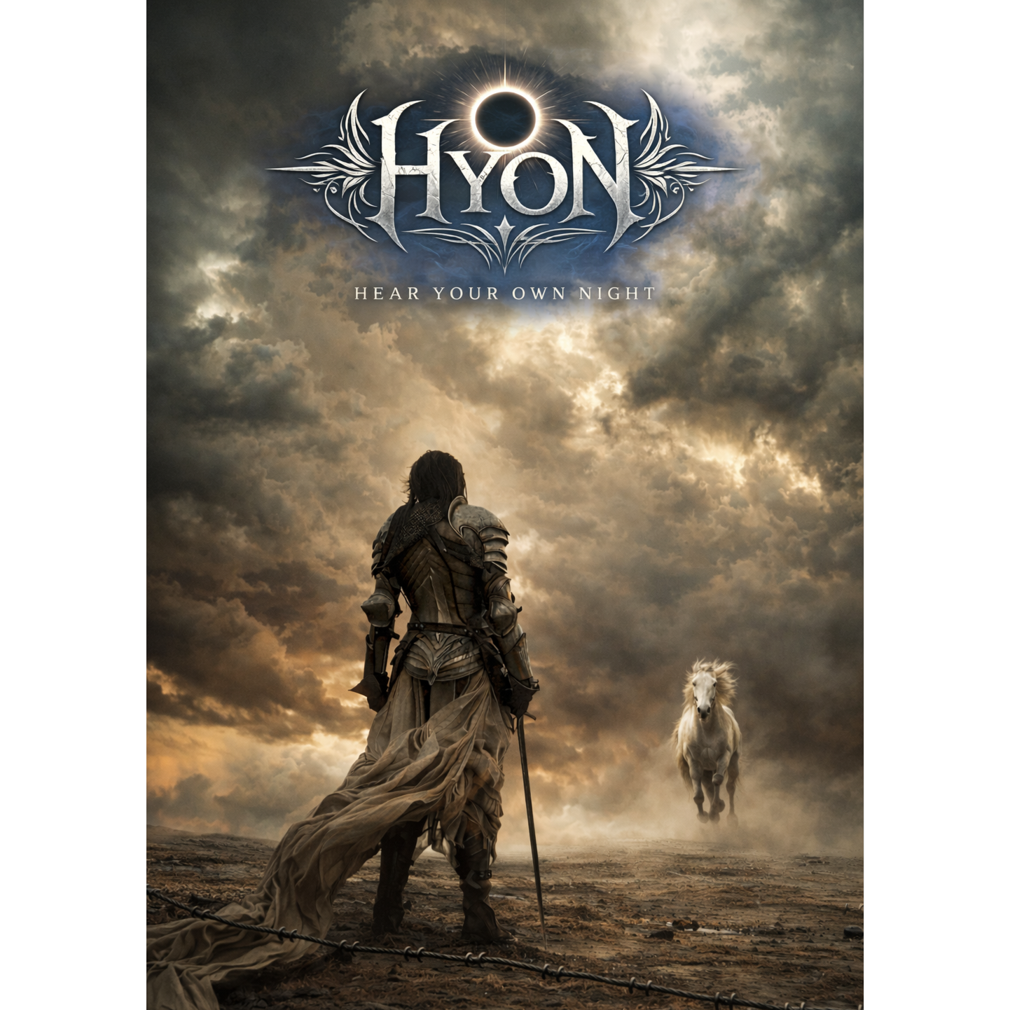 Symphonic metal track with modern heavy metal foundation, 125 BPM), key of D minor, Cinematic but controlled atmosphere, focused on preparation before battle rather than rage, Heavy distorted guitars with tight, clear riffing, thick and grounded bass, punchy drums with disciplined groove, Orchestral arrangement includes low strings for weight, violins for lift, restrained brass accents, and subtle choir pads supporting the chorus without overpowering the band, Lead vocal is a female vocalist (Yeoni) using the HYON Suk-Seon Vocal Method: Seopyeonje-inspired phrasing, clear articulation, emotionally restrained yet strong, sustained notes cutting through dense orchestration, Male supporting vocal (JSTONE) uses a Dongpyeonje-inspired style: dry, direct, forceful delivery, appearing only at key moments for short lines or chant-like emphasis, never dominating the lead, Verses are focused and contained, pre-chorus builds tension, chorus is wide and anthemic, bridge features orchestral rise