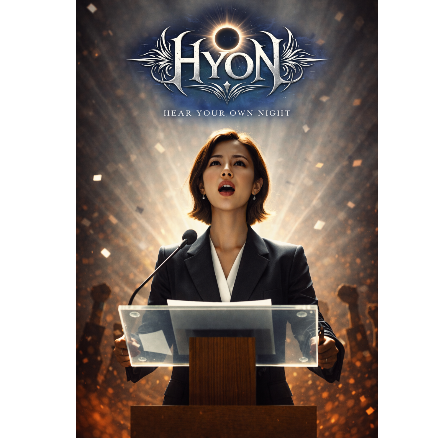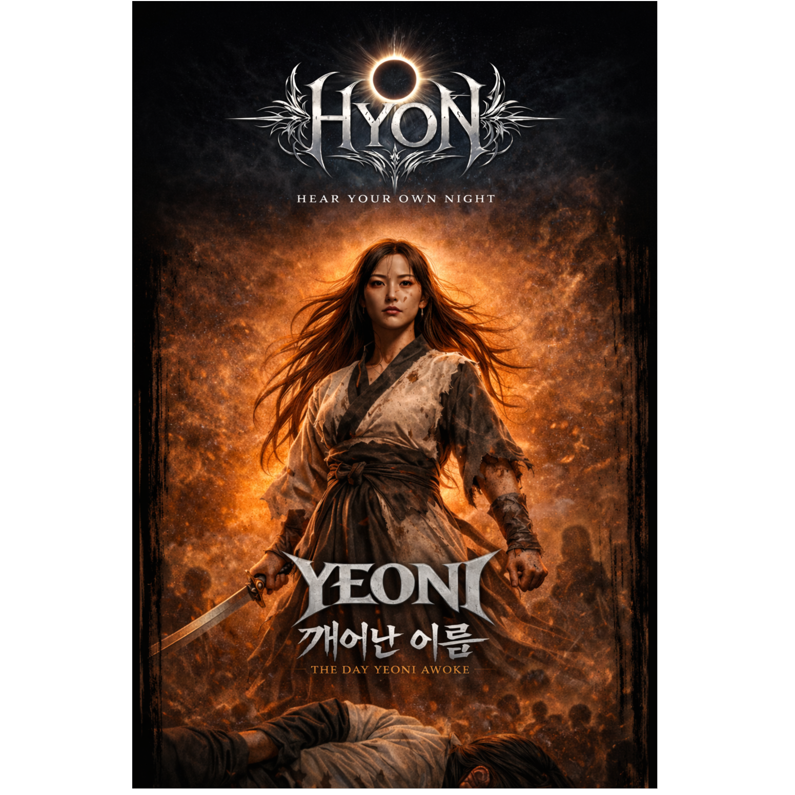 Cinematic protest rock driven by drums as the main narrative force, Tempo starts at 78 BPM with sparse percussion, gradually intensifying to 136 BPM, Dark D minor key, heavy low-end toms, deep kick, restrained snare, minimal cymbals early โ explosive full kit in final chorus, Drums are emotional core: heartbeat-like patterns, steady endurance, no flashy fills until bridge drum solo, Vocals: Korean female lead (ANIMA/Yeoni tone), restrained, dignified, no sobbing, clear diction; emotional rise without melodrama, Arrangement: low cello drones, muted electric guitar textures, distant choir pads, subtle industrial ambience, Mood: thirst for justice, silent resistance, testimony through rhythm, Theme: โThis is not rage โ this is proof of survival, โ