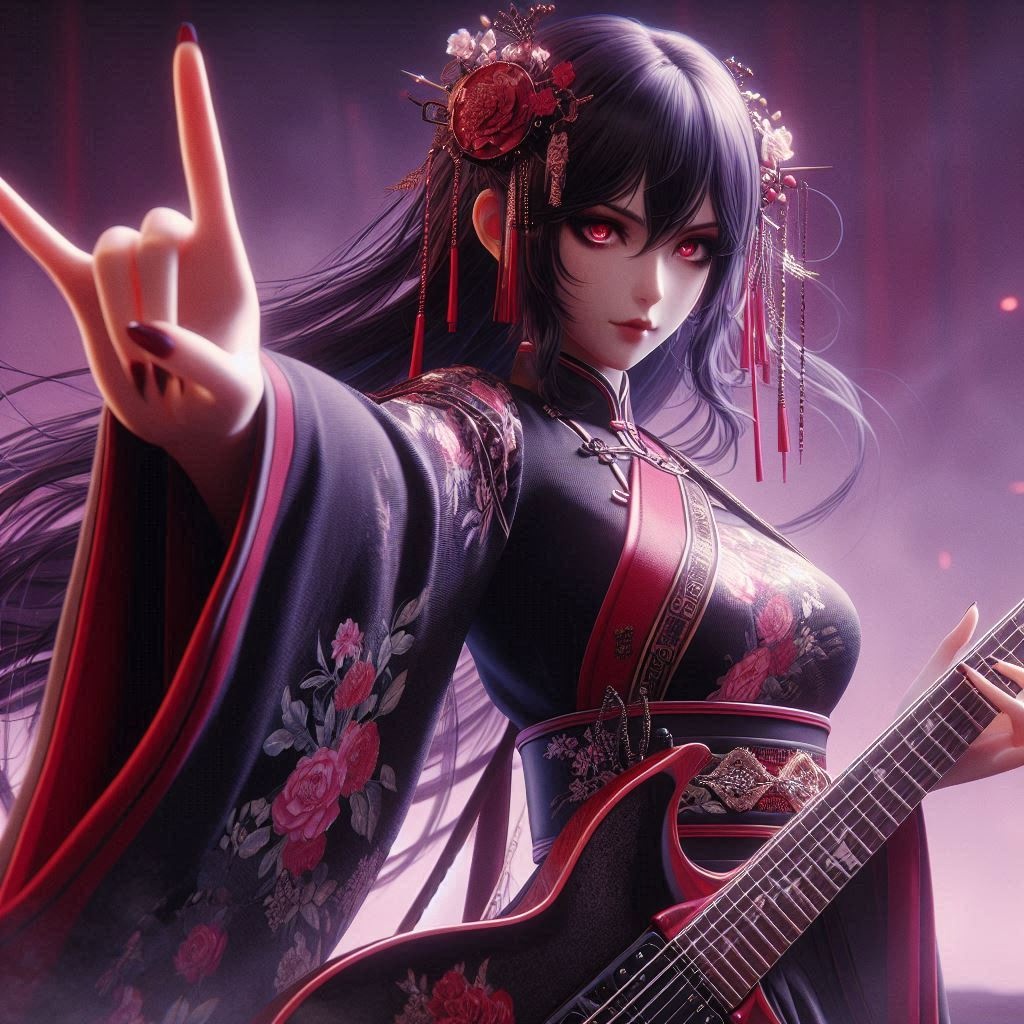 erce high-energy fusion track blending stylish pop with heavy rock and edgy electronic elements, Female vocals with attitude, layered harmonies, and intense performance energy, Aggressive beat with distorted guitar riffs, cinematic drops, and dark glam aesthetic, Title: Black Fang