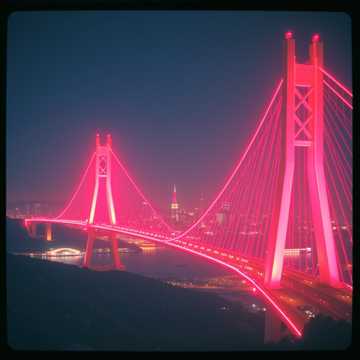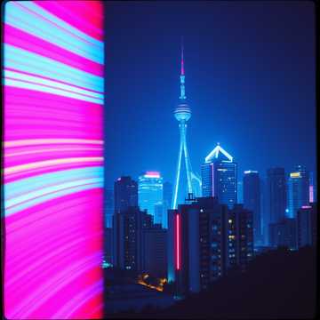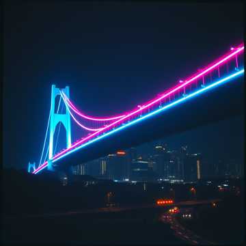 Stadium Live experience, Epic fusion of Indie-Rock and Synthwave, featuring driving electric guitars, punchy basslines, shimmering synth arpeggios, atmospheric pads, and dramatic drum patterns around 120–125 BPM, Use soaring vocal lines with dynamic builds and echoing effects to create an emotional, cinematic atmosphere, Layer subtle choral textures and reverb-heavy synth leads to enhance the sense of grandeur, Percussion should blend live drums with electronic elements, giving a modern yet timeless feel, Emphasis on building tension and release throughout the song, creating an immersive, energetic journey, The song title is "Neon Bridges, ", ‑Pure Ambient, ‑Chillout, ‑Reggae, ‑Trap (passen nicht zum dramatisch-epischen Vibe)