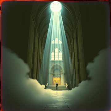 Live performance simulation of Electronica × Gospel Choir × Ambient Piano in a grand cathedral / domed church, Ambient pads, airy synths, and ambient piano captured with cathedral reverb, Gospel choir and solo lead vocals recorded with natural hall reflections, allowing long sustain and lush harmonics, Electronic rhythm is subtle but present (light kick, airy hi-hats, soft percussion), blended into the live acoustic environment, Include crowd ambience as subtle congregational presence (soft breathing, faint murmurs, spontaneous “amen” moments), Dynamic build-ups emphasize natural reverb and choir layering, Title: Morning Prism – Live at the Cathedral, ‑Heavy EDM, ‑Rock, ‑Trap