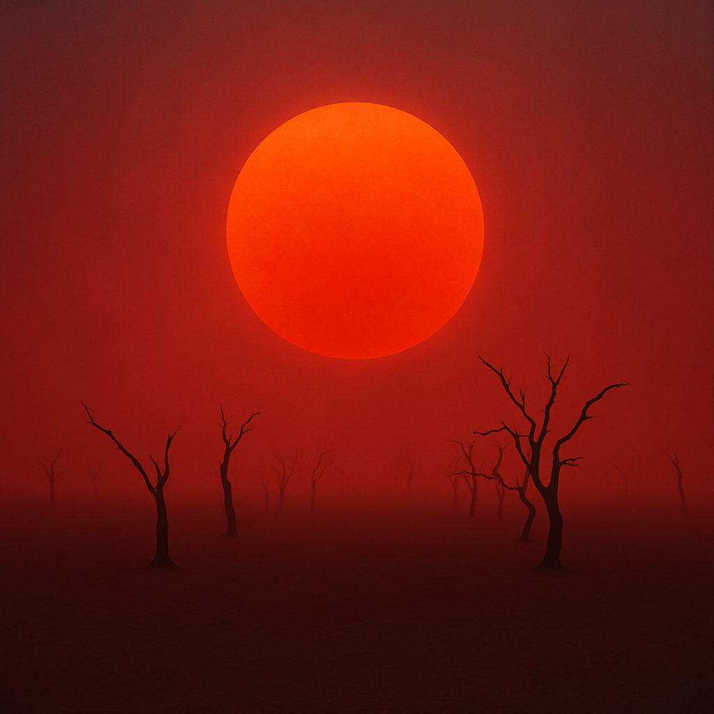 Layered deep percussion initiates in sparse pulses, growing with complex polyrhythms and evolving textures, Intensities rise and fall with rolling drums, hand percussion, and resonant low-end, accented by sudden “red” surges—crashes, claps, or vocalized exhales—huge, earthy, unmelodic, ecstatic
