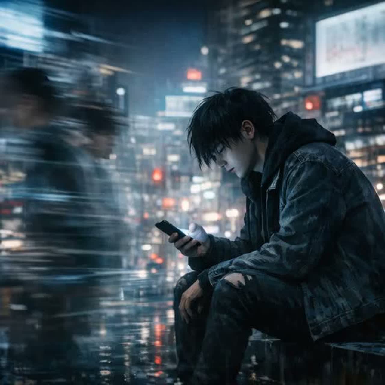 Emo Rock / Emotional Alternative Rock style, Clean guitar arpeggios in the verses, with a dry, tight drum sound, Chorus opens with distorted guitars and wide stereo layers, Bass is warm and melodic, supporting the emotional lift, Vocals are intimate, slightly breathy, with a fragile tone in the verses, Chorus vocals become more powerful but still emotional, with light doubling, Overall atmosphere: melancholic, modern, urban night mood, Influences: Japanese emo rock, alternative rock, and post-hardcore ballads, Dynamic contrast between quiet verses and explosive choruses