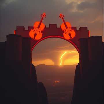 Epic, intense instrumental cinematic cover of “Heart of Courage” by Two Steps From Hell, Heroic, emotional, high-impact orchestral sound, Features: soaring solo violins with expressive melodies, massive orchestral strings and sharp string hits, thunderous kettledrums/timpani, cinematic percussion, Add powerful electric lead guitar solos in the style of Herman Li, including fast runs and dual harmony leads, blended with orchestra, Structure: slow dark intro with low strings and distant drums → long dramatic buildup → huge drop with full orchestra, pounding timpani, soaring violins, and electric guitar lead, Midway breakdown: intimate emotional section with solo piano only, supported by very soft ambient strings, no percussion, Rebuild into an even bigger final climax with harmonized guitar leads, triumphant violins, relentless drums, Mood: heroic, epic, intense, triumphant