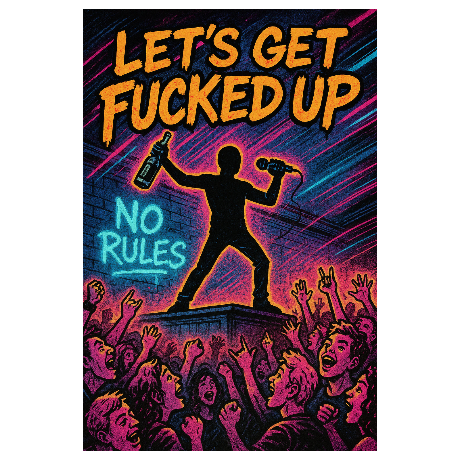 Genre: EDM dance-pop / hardstyle, Mood: Adrenaline, reckless, neon-lit, Instrumentation: Distorted bass, pounding kicks, risers, trap hats, Vocals: Female, confident, shout layers on “Jump, ”