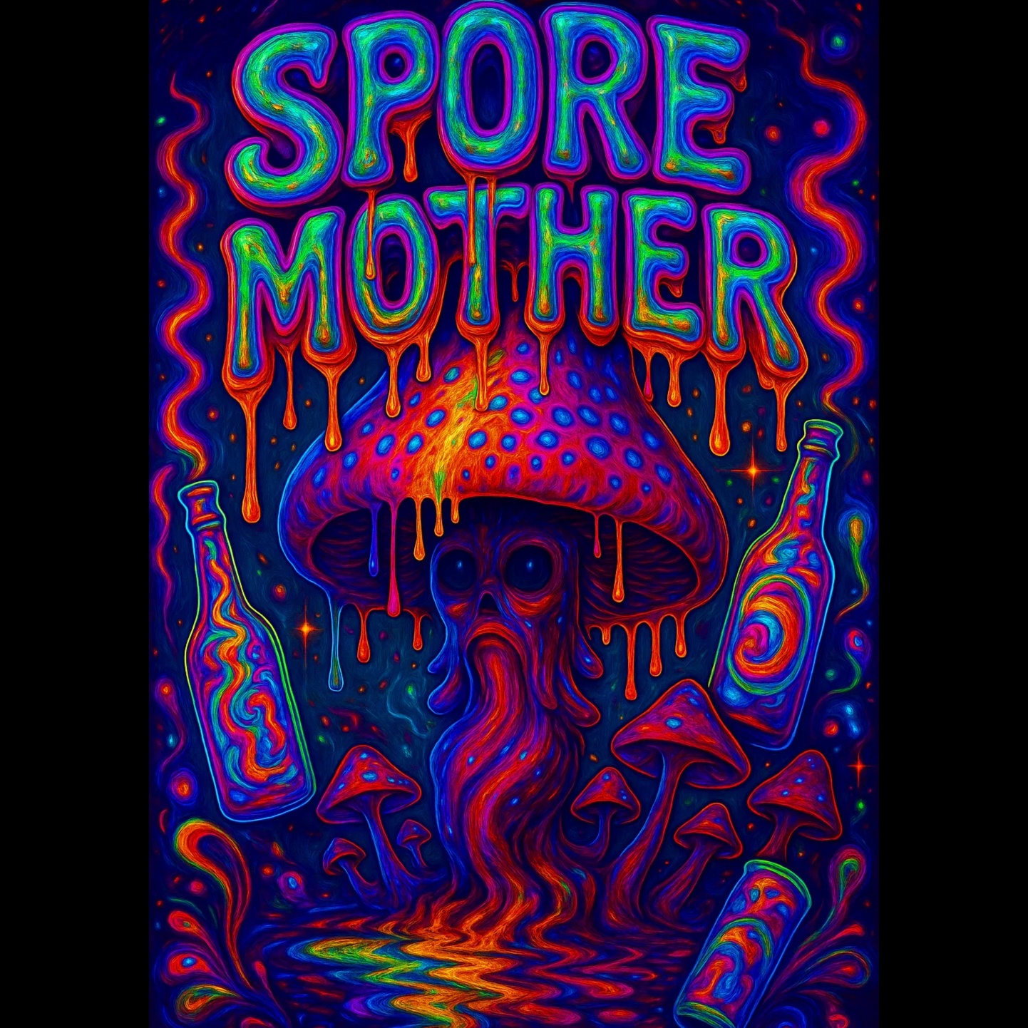 A sleazy glitch-funk psytrance club cut, 146 BPM, dripping with erotic fungal innuendo, Sticky slap-bass grooves grind under pounding psy-kicks and moist glitch stabs, Vocals are chopped, whispered, and vocoded—moans, squelches, and playful dirty talk woven into the beat, Structure mutates with glitch-hop half-time breaks, bass-heavy buildups, and explosive psytrance drops, Sound design is wet, granular, and feral: dripping delays, spore-splatter bursts, and sticky reverb tails, Tone: raunchy, surreal, and grotesquely playful—equal parts sweaty rave anthem and fungal kink ritual
