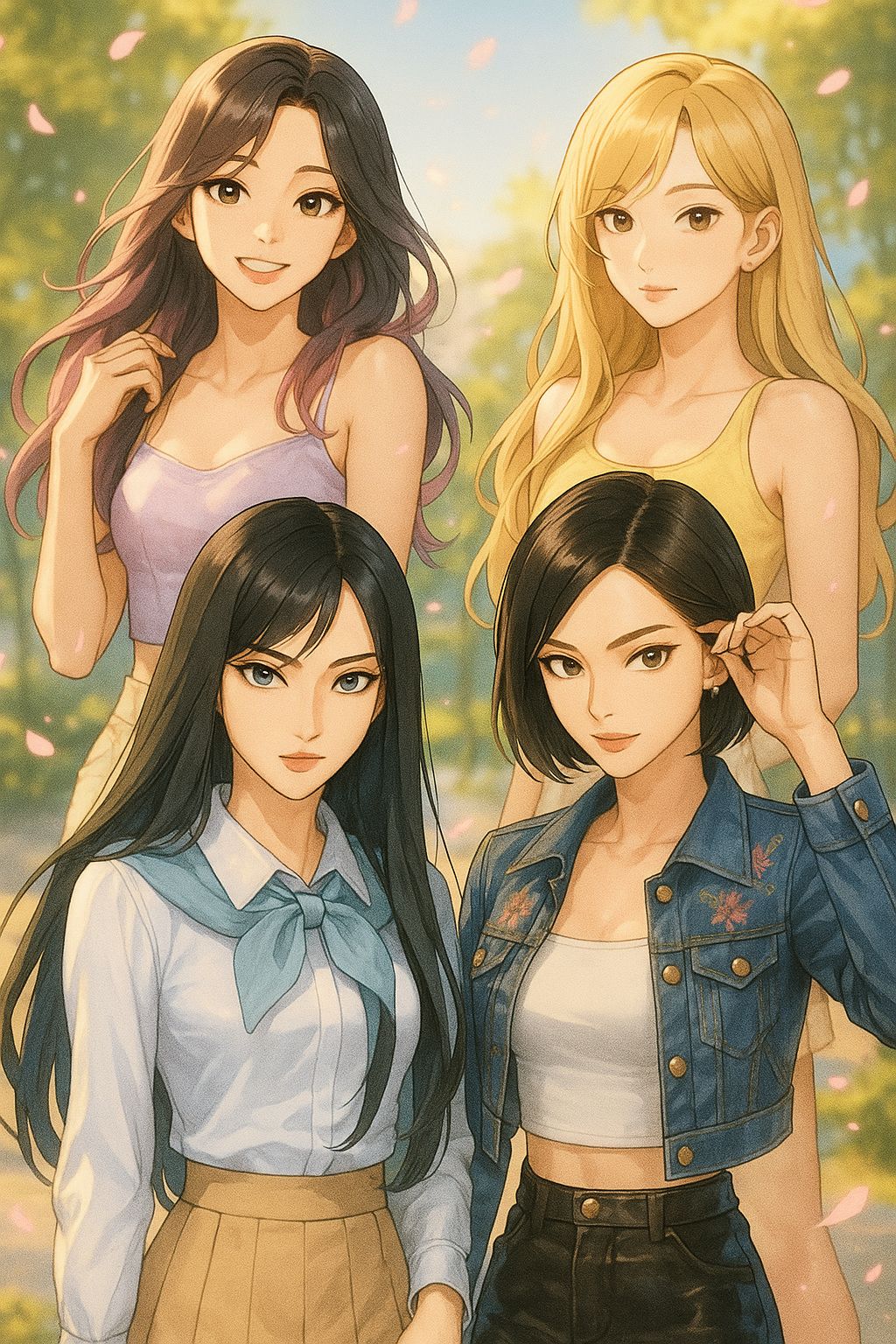 “128 BPM, EDM × hiphop chant anthem, Four-on-the-floor kick, distorted bass, chopped vocal samples, Group chorus chant (‘Bounce all night!’ in English + Korean), Explosive drop with sharp synth stabs, Festival-ready, choreo-focused, club anthem, ”