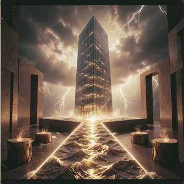 Cinematic Techno Opera, Bb Minor, 90 BPM, 35Hz deep sub-bass vibration, raw original thunder recording, haunting Saxophone solo, heavy Orchestral drums, ghostly 8-part vocal chorus, 360-degree immersive raw mix, atmospheric cinematic textures, aggressive rhythmic vocals, wall of sound finale
