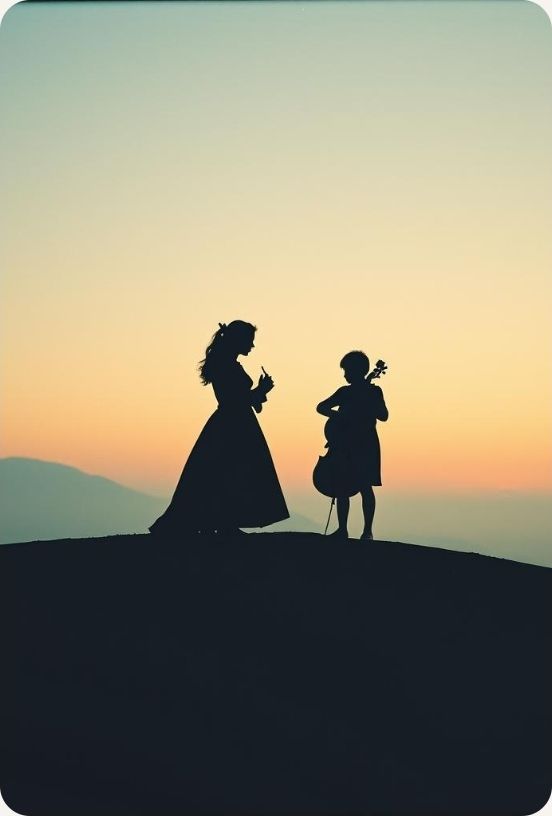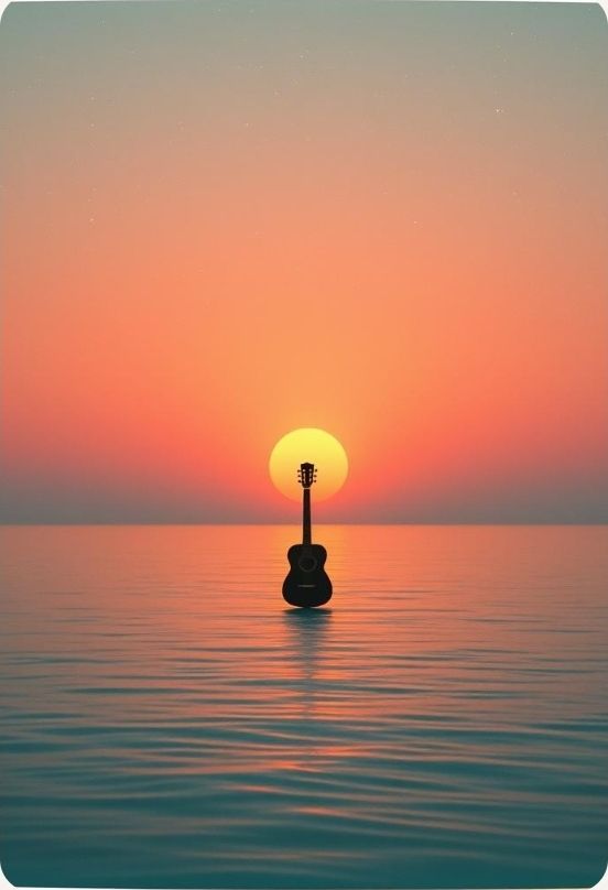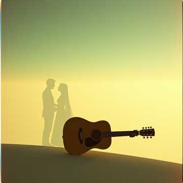 indie folk ballad, #vocal:Male very softly #vocal : choir of kids whispered voice, #instruments :accoustic guitar classic 12 chords, soft piano, distant cello, smooth and light violon #Mood: melancholic, sad, lullaby #hook image : shadows of lovers on the sunset_ with stars_ realistic style detail