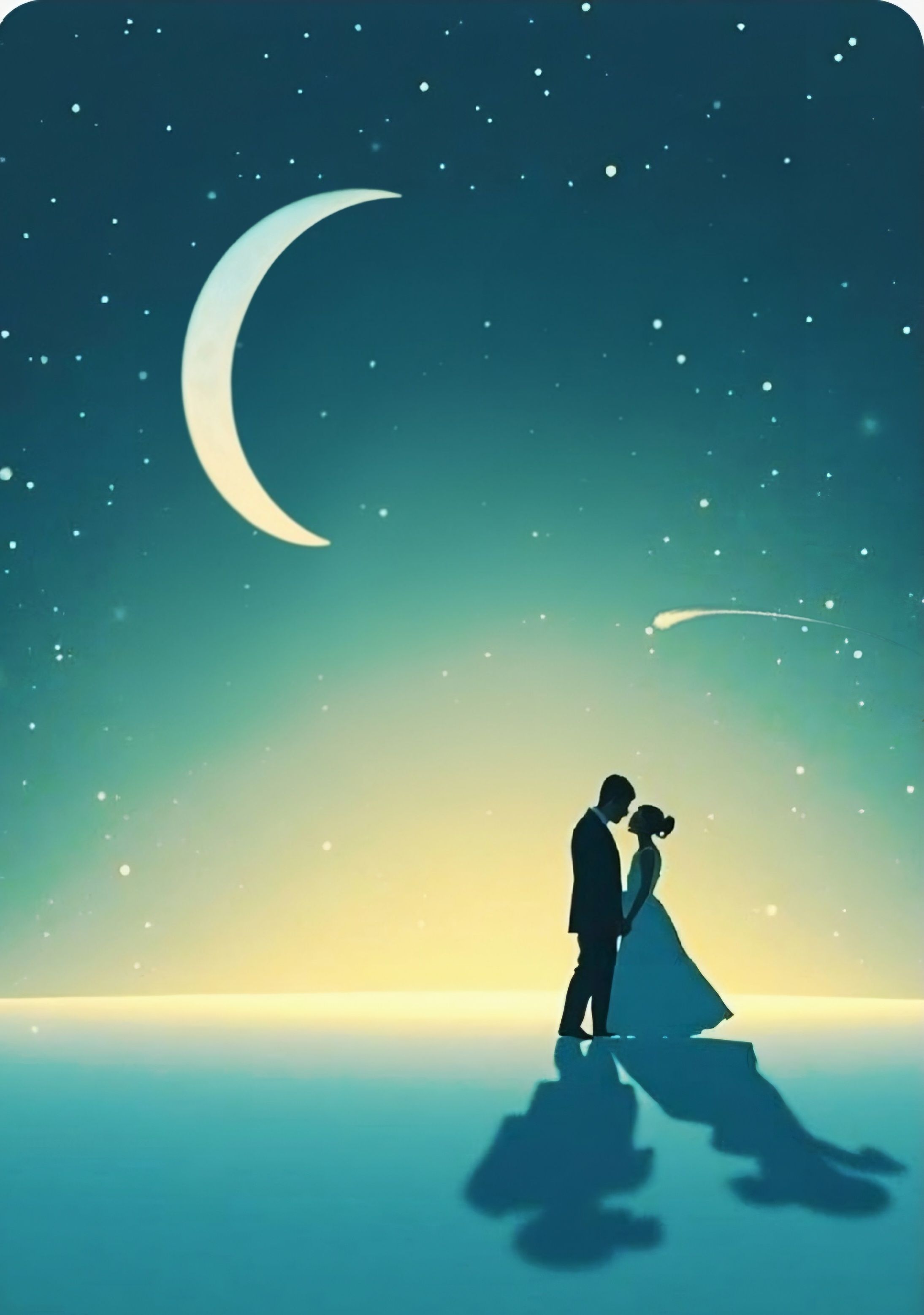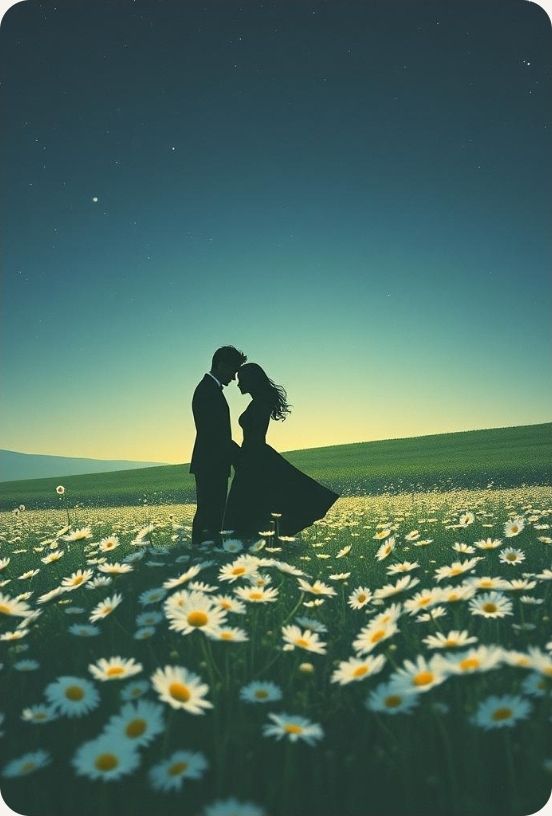 #hook_image: shadows of lovers on the field of daisy, under stars, realistic detailed style