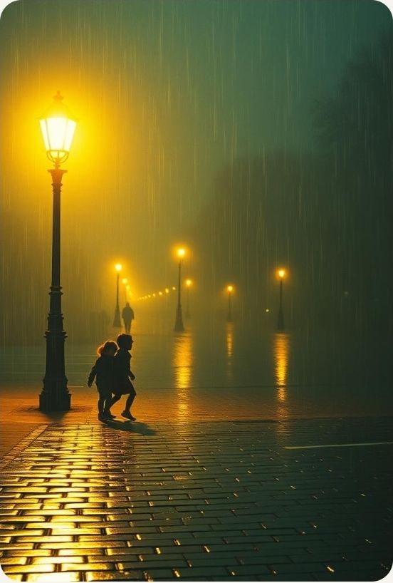 #hook_image: shadows of kids playing at night_realistic_with stars_realistic detail