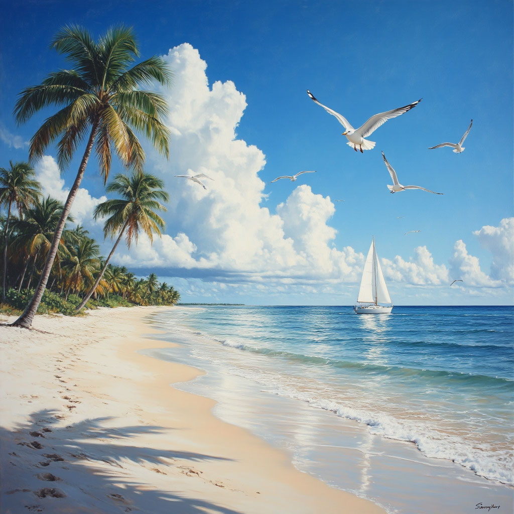 Duration: 4-5 minutes, Mood: joyful, romantic, reminiscent of a magical journey to the island of Bounty — lush nature, warm sun, and carefree bliss
